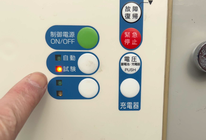 非常用発電機は、他の部品が正常であっても、バッテリーに不具合があれば始動できません。そうした重要ポイントも含め、確実な点検を行いました。
